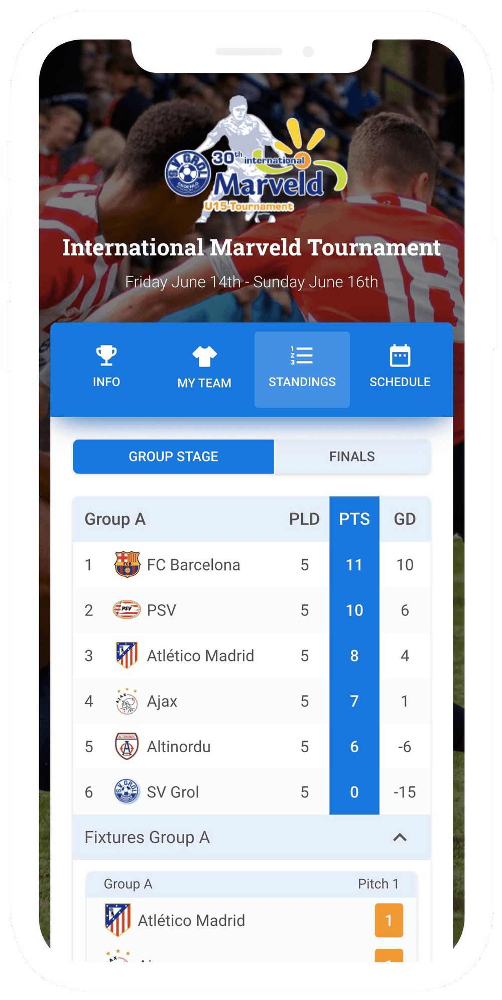 Show your tournament in the Tournify App for the best experience. Keep everyone in the loop.
